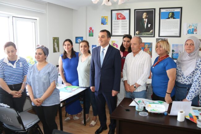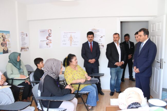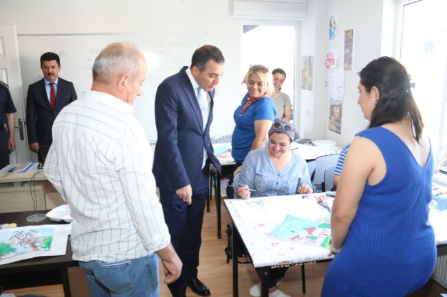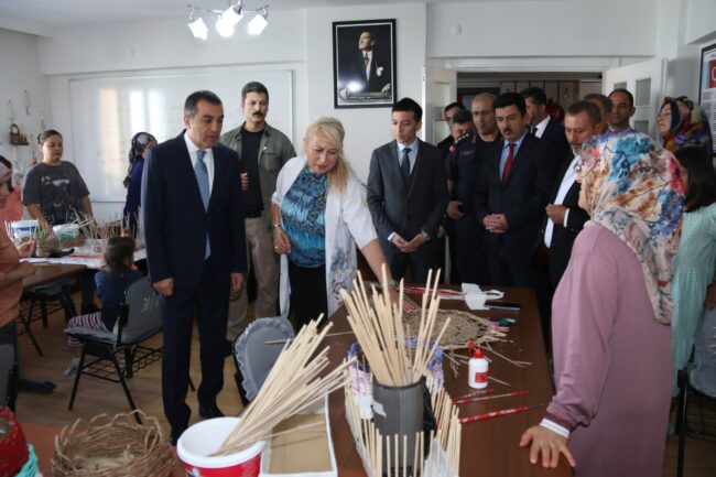 Açılış sonrası, ADEM’de “Dekoratif Sepet Örücülüğü, Akrilik Boya Resim, Hasta ve Yaşlı Bakımı Kurslarını” ziyaret ederek incelemede bulunan Vali Öksüz, yürütülen çalışmalar ile 53 kursiyer ve 21 çocuğa hizmet verecek merkezle ilgili yetkililerden bilgi aldı.