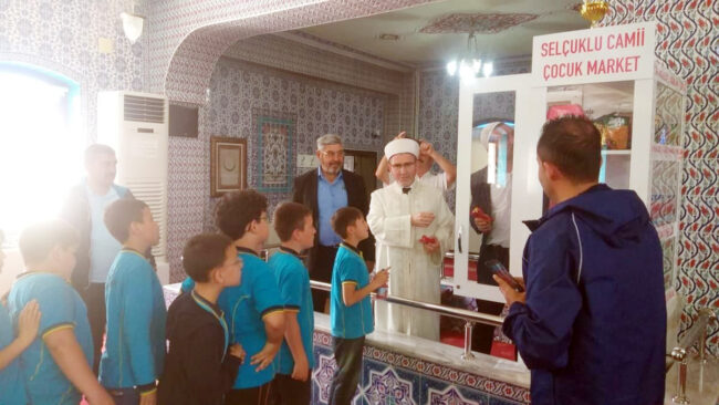 Uydukent Mahallesinde bulunan Selçuklu Camiinde, Camii görevlilerinin organizasyonu, hayırseverlerin desteğiyle, “Cami-Çocuk Marketi” açıldı.