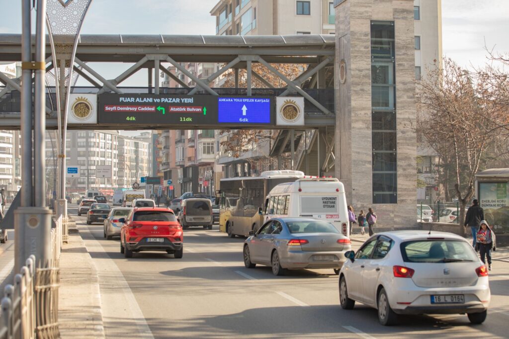 Atatürk Bulvarı’nda bulunan yaya üst geçitindeki dijital ekran, Maliye Kavşağı-İstasyon Kavşağı-Jandarma Kavşağı güzergahında üzerinde anlık trafik bilgilerini sürücülere sunan akıllı bir sisteme dönüştürüldü.