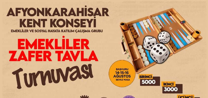 Afyonkarahisar Belediyesi ile Kent Konseyi işbirliğinde emeklilere özel tavla turnuvası düzenlenecek.