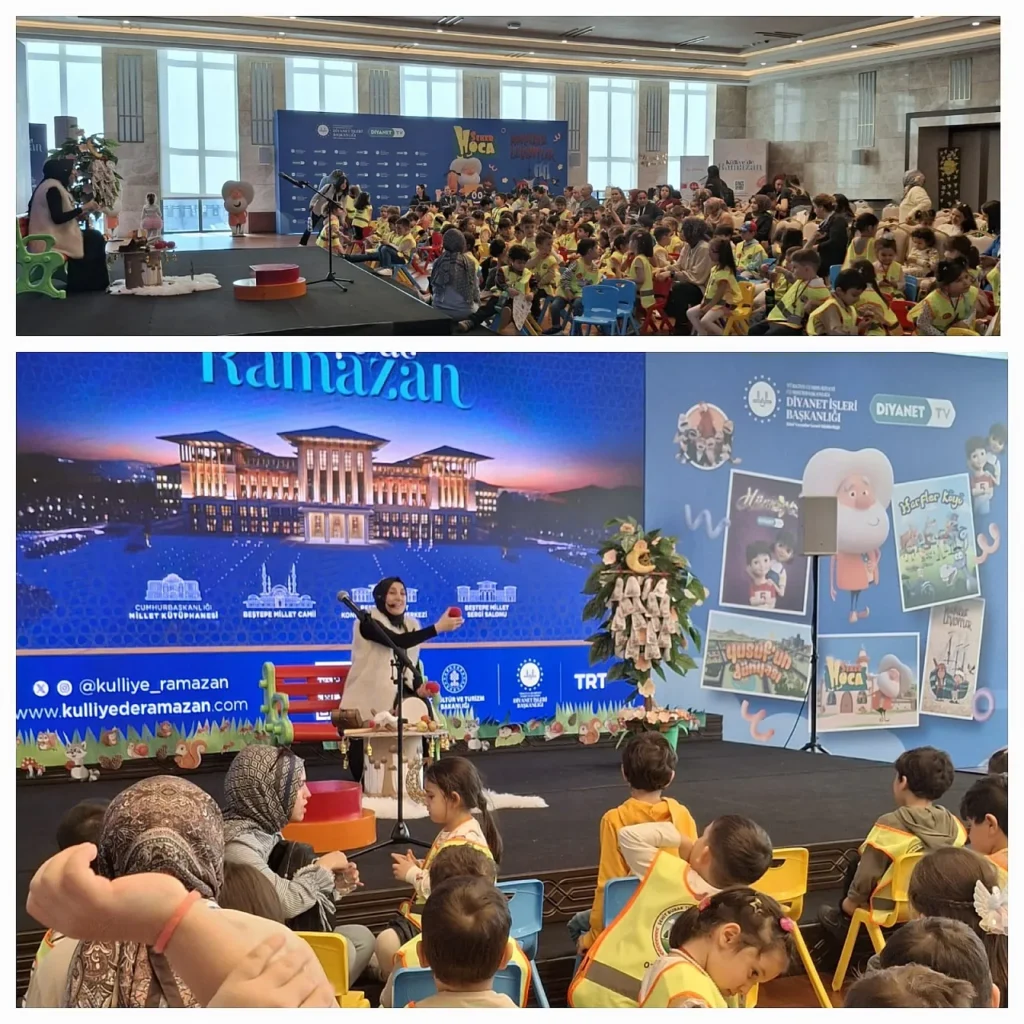 Afyonkarahisar İl Müftülüğü Nuribey Beldesi Hz. Meryem 4-6 Yaş Kur’an Kursu Öğreticisi Nuray Özer, Diyanet İşleri Başkanlığı (DİB) Eğitim Hizmetleri Genel Müdürlüğü tarafından düzenlenen ‘Külliye’de Ramazan-Külliye’de Çocuk Sesi’ etkinlikleri kapsamında Cumhurbaşkanlığı Külliyesi’nde masal anlatıcısı olarak görev aldı.