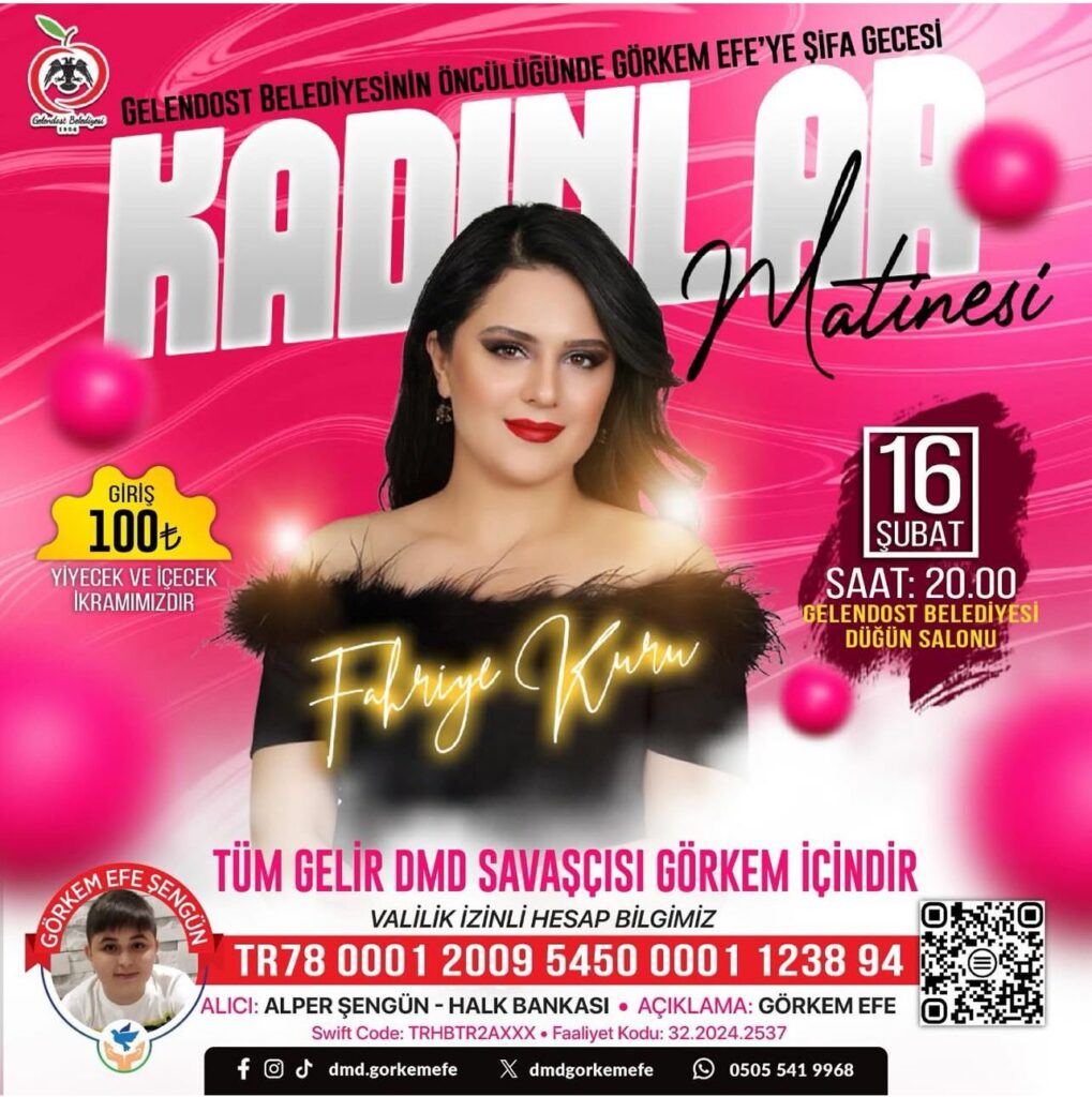 Dayanışma hareketinin bir diğer durağı ise Gelendost olacak. Gelendost Belediye Başkanı Mustafa Özmen’in öncülüğünde, 16 Şubat 2025 tarihinde Gelendost Belediye Düğün Salonu’nda bir Kadınlar Matinesi daha gerçekleşecek. Buradan elde edilecek tüm gelir, Görkem Efe’nin tedavi sücesine aktarılacak. Bu etkinliğin biletleri ise 100 TL’den satışa sunuldu.