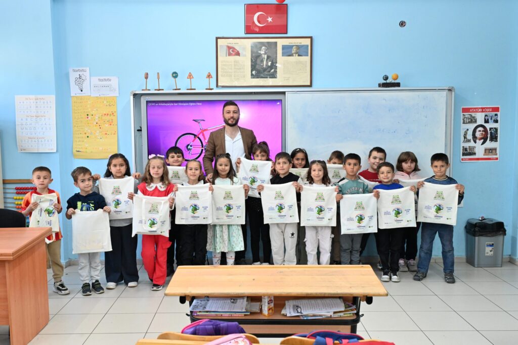 Eğitimlerin son durağı Büyük Hacılar İlkokulu oldu. Belediyenin çevre ekipleri, öğrencilere “Çevki ve Arkadaşlarıyla Geri Dönüşüm” eğitim filmini izletti, ardından onlara boyama kitapları, tohumlu kalemler ve not defterleri hediye etti. Küçük öğrenciler, evlerinden getirdikleri atık pilleri özel kutulara atarak ilk çevreci adımlarını atmış oldu.