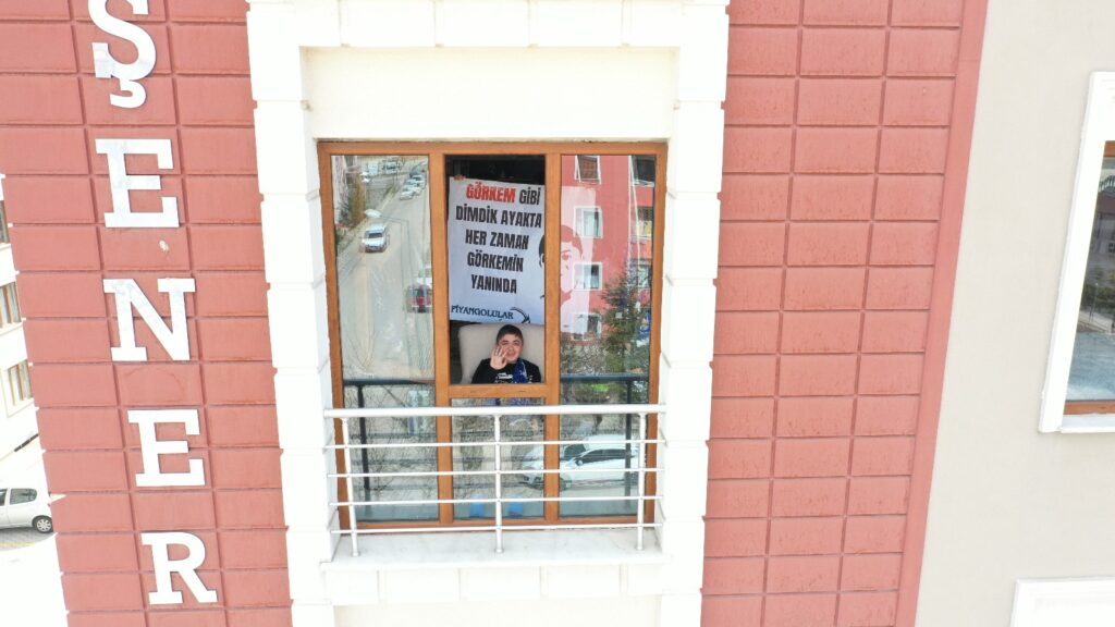 Desteğin okul sınırları içinde kalmadığı etkinlikte, Ahmet Melih Doğan Anadolu Lisesi Müdürü Aytekin Tokgöz ve 11/F sınıfı öğrencileri, Görkem Efe’yi evinde ziyaret etti. Arkadaşlarının jesti karşısında duygulanan Görkem Efe, boynuna takılan atkısıyla dışarıdaki drone’a el salladı. Bu anlamlı buluşma, duygu dolu anlara sahne oldu.