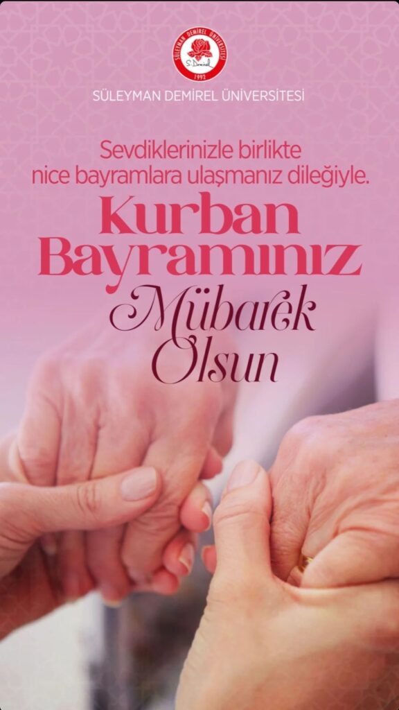 “Kurban Bayramı’nın, ülkemize, içinde yaşadığımız bu kadim coğrafyaya, İslam âlemine ve tüm insanlığa sağlık, barış, huzur ve esenlik getirmesini diliyorum. Aziz milletimizin ve Süleyman Demirel Üniversitesi ailesinin bayramını en içten dileklerimle kutluyorum.”