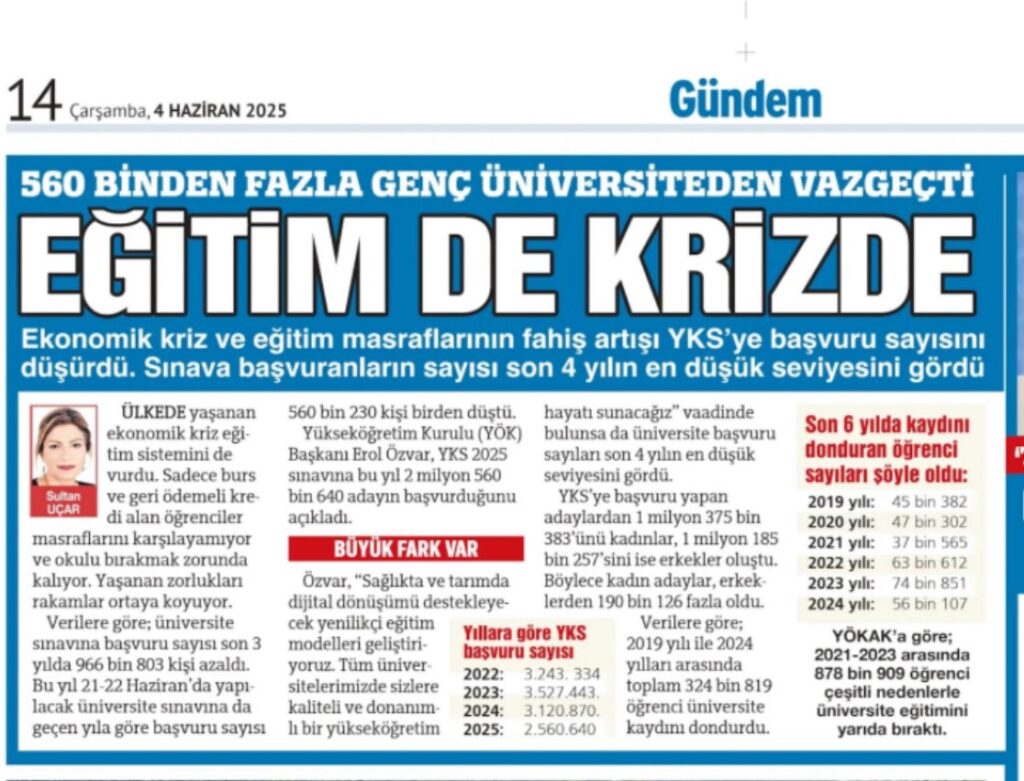 Üniversiteler mezun üretmeye devam ederken, sistem mezunlara gelecek sunamıyor. Gençliğin umudu kırılırsa, bir ülkenin geleceği de kararır.